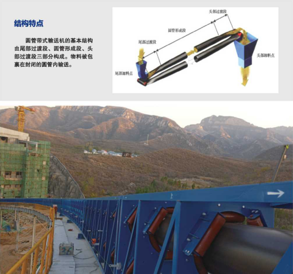 圓管帶式輸送機(jī)系列產(chǎn)品是一種適用于各種復(fù)雜地形條件下綠色環(huán)保的連續(xù)物料輸送設(shè)備,具有節(jié)能環(huán)保、不受地形限 制、物料適用性廣、輸送效率高等優(yōu)勢特點,并已在礦山、港口、冶金、電力、水泥、煤化工等領(lǐng)域廣泛應(yīng)用。可根據(jù)客戶 的具體要求,進(jìn)行地形、地質(zhì)勘探,系統(tǒng)設(shè)計、制造、安裝、調(diào)試、培訓(xùn)、操作等全方位技術(shù)服務(wù)及全過程技術(shù)支持。